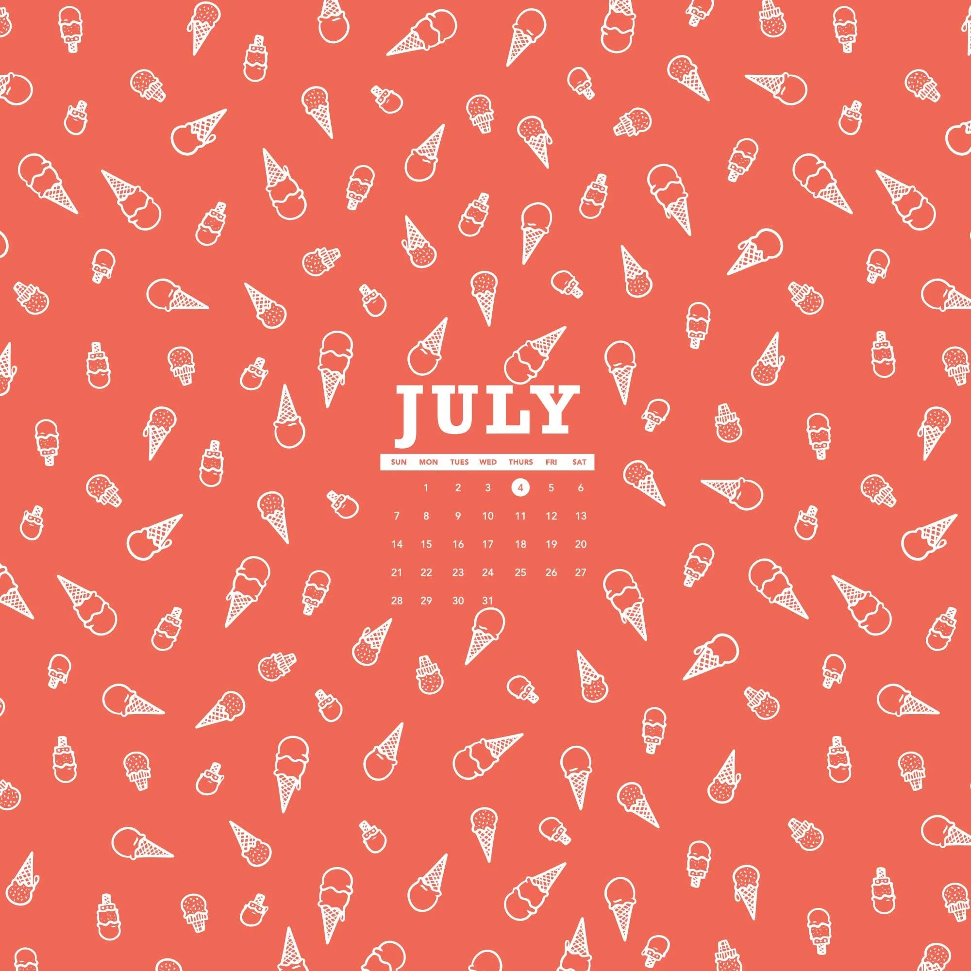 Are you a cake cone or waffle cone kinda person? It’s hot as balls here in Colorado this week and that sun is a scorcher, just in time for the 4th of July! So cool down with this FREE digital wallpaper design with all the ice creams. Slap this sweet little ditty on all your screens to fancy them up for the month. Please share and enjoy!