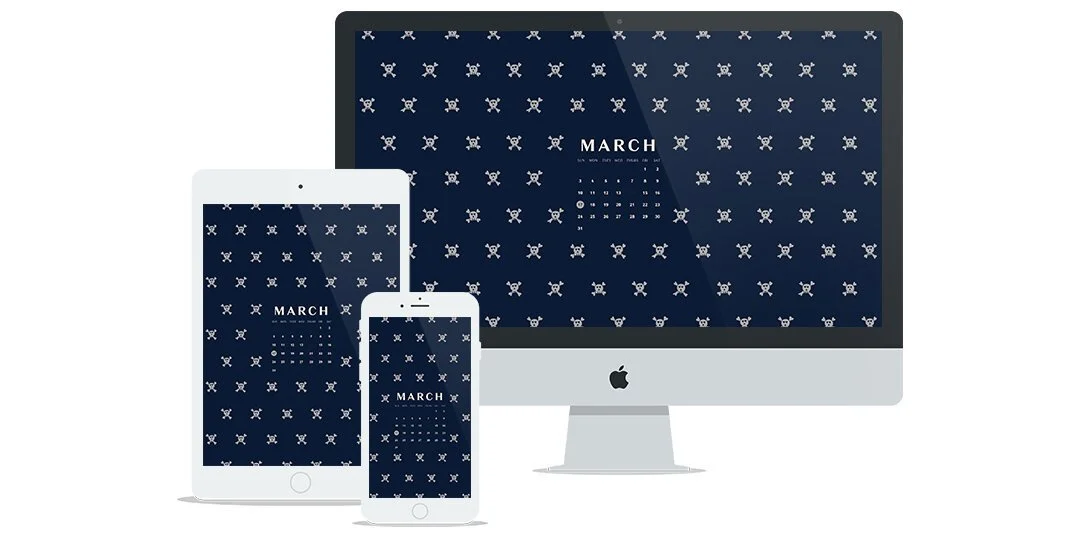 Hello, hello! March is here and so is the FREE wallpaper design for the month. This month I’ve whipped up a pattern that’s just cute to death with happy little heart-eye skulls in navy + gray — my favorite colors! Grab this bad to the bone digital download below and keep scrolling for an update on what I’ve been up to + some super exciting news!