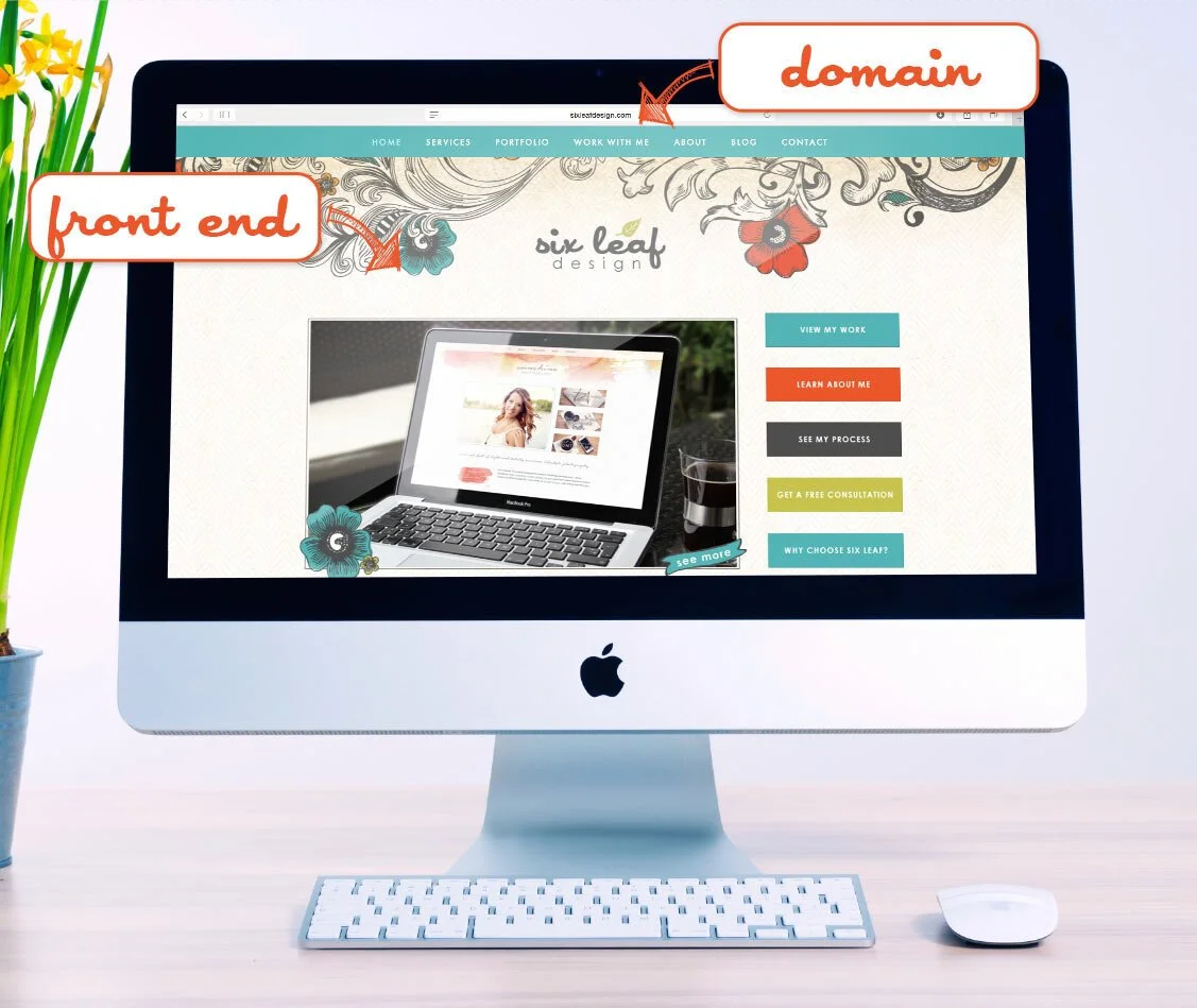 Domain: A website’s domain is the name or web address of your website. My domain is www.sixleafdesign.com and that’s where users can find me on the Internet. If your website was a house, the domain would be the physical address you give so people can find you.
