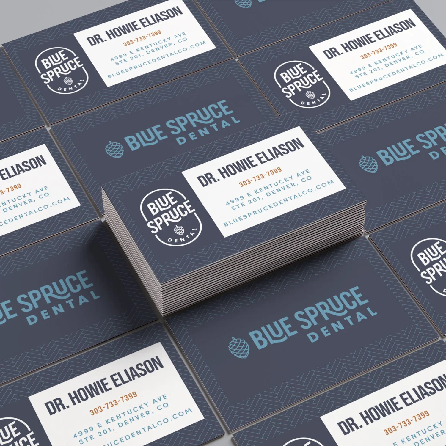 The Blue Spruce Dental logo was designed to be wholesome and clean, with a nod to vintage brewery brands from Colorado. The main font was selected for the condensed blocky style and curves, and the secondary font was selected because of its round, friendly nature.